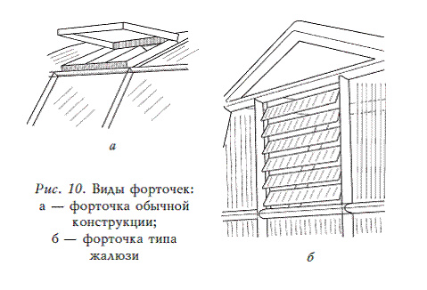 Форточки, устанавливаемые в теплице или парнике, могут быть двух видов: обычной конструкции и типа жалюзи (рис. 10).