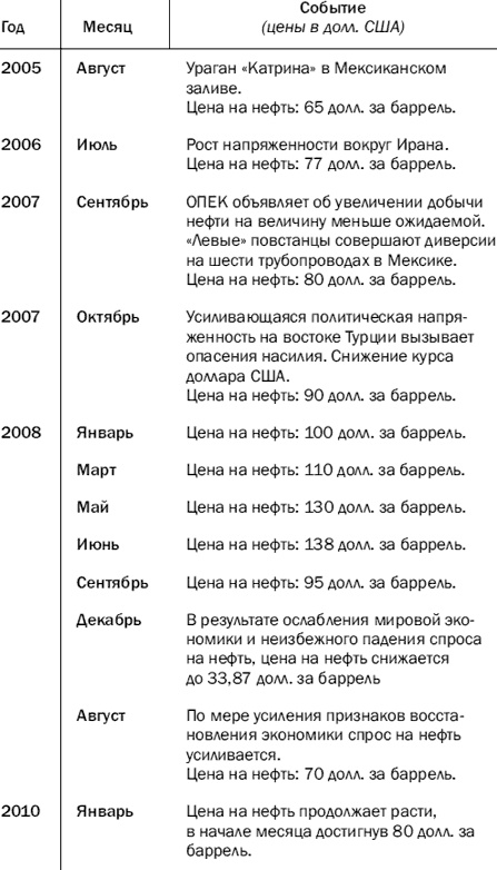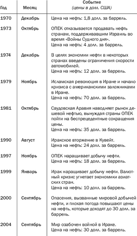 Запад с большим опозданием обнаружил знаки, предупреждающие о росте цен на нефть. Еще в сентябре 2003 г., когда баррель нефти стоил менее 25 долл., американцы редко проявляли к этому какой-либо интерес. «Визг» на заправочных станциях случился только раз, во время краткого, но болезненного эмбарго, введенного арабскими странами в 19731974 гг., когда цены на нефть выросли сразу вчетверо: с 23 долл. за баррель в конце 1972 г. до 12 долл. США в конце 1974 г.