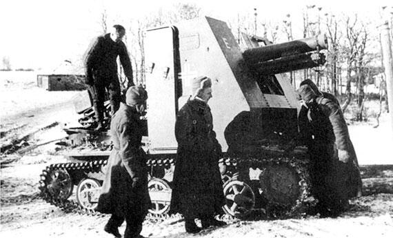 Захваченная советскими войсками 150-мм самоходная установка sIG33(sfl). Декабрь 1941 г.