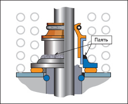 Замена втулки дело дорогое и сложное. Описанный ниже способ поможет временно устранить проблему. Сняв тарельчатую шайбу (опору внутренней пружины клапана), впаиваем в нее припоем ПОС-61 колпачок (диаметр последнего немного меньше диаметра отверстия в шайбе). Высоту пайки нужно подобрать так, чтобы обеспечить нормальную сборку узла. Нижнюю сторону опорной шайбы уплотняем резиновым кольцом и герметиком.