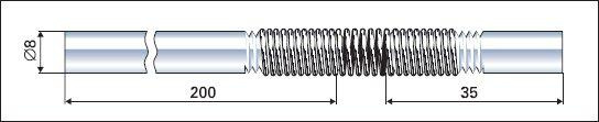 В двигателе ЗМЗ-406 «Волги» глубокие колодцы для свечей расположены вертикально, поэтому подпереть через них клапаны, чтобы «засухарить» их, не снимая головки блока цилиндров, простым инструментом не удается. Нехитрое приспособление, показанное на рисунке, решает эту проблему. На концах двух отрезков дюралевого прутка диаметром 8 мм и длиной 200 и 35 мм нарезаем резьбу и соединяем отрезки между собой пружиной, навернутой на нитки резьбы. Вводим короткий отрезок приспособления в цилиндр, поворачиваем на нужный угол и подпираем клапан.