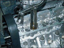 Также в качестве поддержки можно применить шнур. Вращая коленчатый вал, подведите поршень возможно ближе к ВМТ, через свечное отверстие введите в цилиндр несколько витков шнура толщиной 4-6 мм, оставив конец снаружи, а затем поднимите поршень до упора. Сжатый шнур подпирает клапан и не дает ему опуститься. По окончании работы шнур легко извлечь.