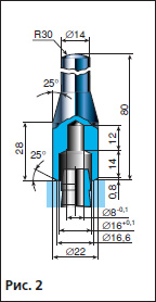 «Ненадежную» втулку можно зафиксировать так: проточить конец детали, как показано на рисунке 1, а после установки в блок зачеканить оправкой-чеканом (рис. 2). Металл головки блока цилиндров плотно охватывает втулку по выточке, что надежно удерживает ее в отверстии. Остается, как всегда при установке новых втулок, развернуть отверстие 8 мм под стержень клапана.