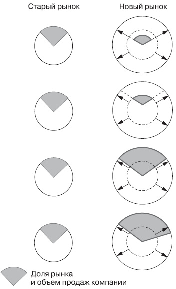 Предположим, что объем продаж вырос. И вы назвали цифру процент, на который вырос объем продаж. Хорошая это цифра или плохая? Считать ли ее достижением? Прежде всего, сравните с процентом инфляции; цифра должна быть выше. Сравните с процентом роста рынка. Если рынок вырос на больший процент значит, компания все-таки утратила свои позиции. Если процент роста продаж равен проценту роста рынка, значит, компания ничего не утратила, но и не превзошла никого из конкурентов. Только в том случае, если объем продаж компании вырос больше, чем рынок, можно считать, что компания чего-то достигла (рис. 0.4).