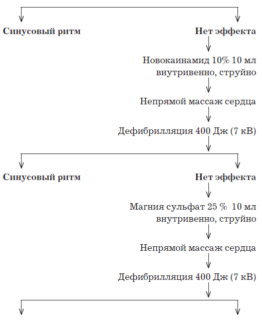 Обеспечение проходимости дыхательных путей, ИВЛ, оксигенация крови, непрямой массаж сердца и дефибрилляция эффективнее медикаментозного лечения и проводятся в первую очередь (до установки катетера в магистральную вену и введения препаратов).
