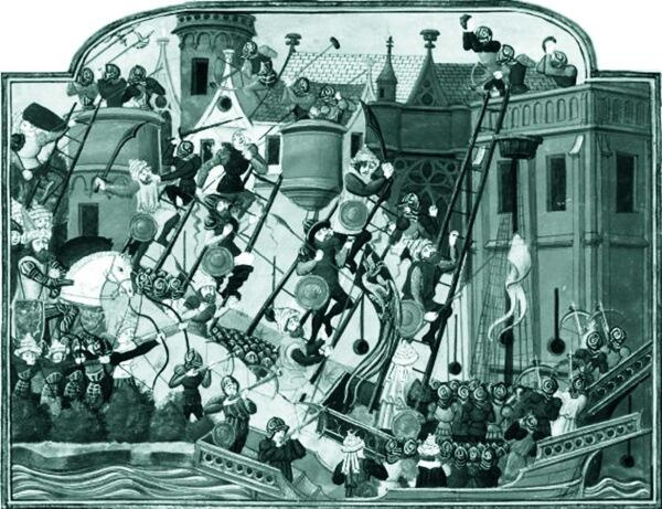 Осада Константинополя турками в 1453 г. Миниатюра из рукописи «Хроники Карла VII» Жана Шартье