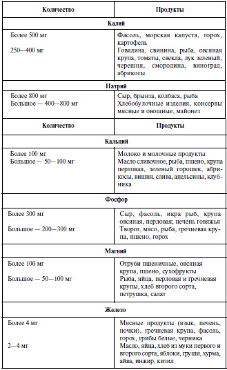Таблица 12. Содержание отдельных макро и микроэлементов в 100 г продуктов