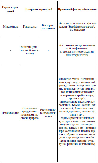 Пищевые бактериальные токсикозы. В отличие от предыдущей группы пищевых отравлений это острое заболевание, возникающее при употреблении пищи, содержащей токсины, накопившиеся в продукте в результате развития соответствующего продуцента, который в пищевом продукте либо отсутствует, либо содержится в крайне незначительных количествах. К бактериальным токсикозам относятся ботулизм и стафилококковый токсикоз.