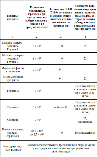 Таблица 6. Микробиологические показатели качества и безопасности пищевых продуктов