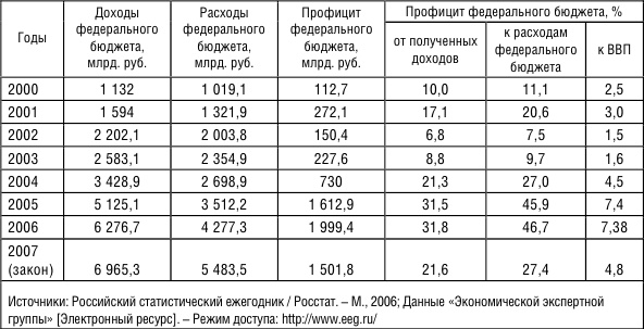 С 2000 г. имелся профицит бюджета, который в 2006 году достиг 7 % ВВП. С 2004 г. создан Стабилизационный фонд РФ, который на 01.01.07 г. достиг около 10 % ВВП (табл. 1.2.4). Почему же федеральные органы страны, имея необходимые финансовые ресурсы, выстроенную вертикаль власти (а в реальных условиях РФ этот вопрос в первую очередь к Президенту), крайне медленно и непоследовательно принимают меры по переходу к социально-экономической политике, направленной на динамичное улучшение качества жизни основных слоев населения?