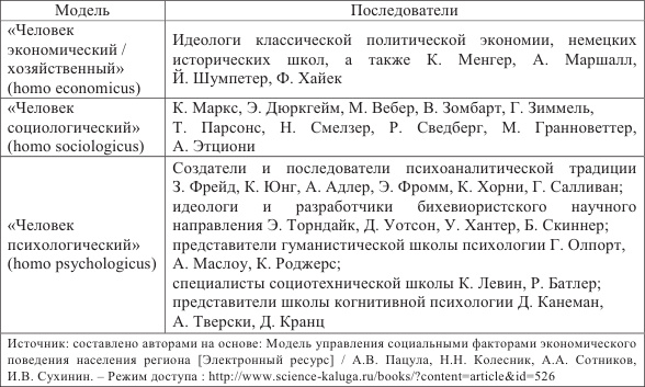 Наибольшее распространение получили три модели человека (табл. 1).