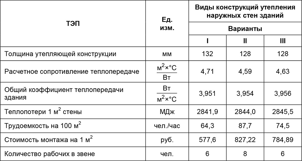 Таблица 1.4. Технико-экономические показатели различных конструкций навесных невентилируемых систем утепления наружных стен зданий