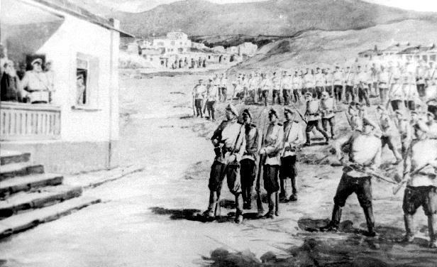 Восстание солдат 83-го Самурского полка. Фоторепродукция с картины художника Э. Астишева.