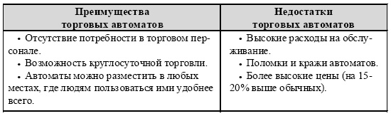 Таблица 8 Преимущества и ограничения торговых автоматов