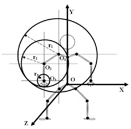 Размер малого круга определяется радиусом действия (r3) соответствующий длине ладони человека. Средний круг определяется длиной предплечья равный радиусу (r2). В большом круге радиус (r1) вращения равен расстоянию от движущегося конца конечности (ладонь) до центра вращения (плечевой сустав). Принцип кругов является основополагающим для суставов, поскольку их строение способно обеспечить разнообразные круговые движение.