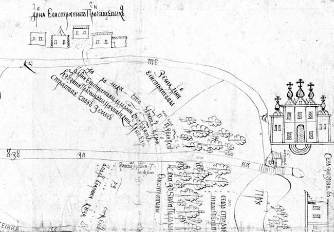 Деревня Елистратьева. Фрагмент чертежа 1694 г.