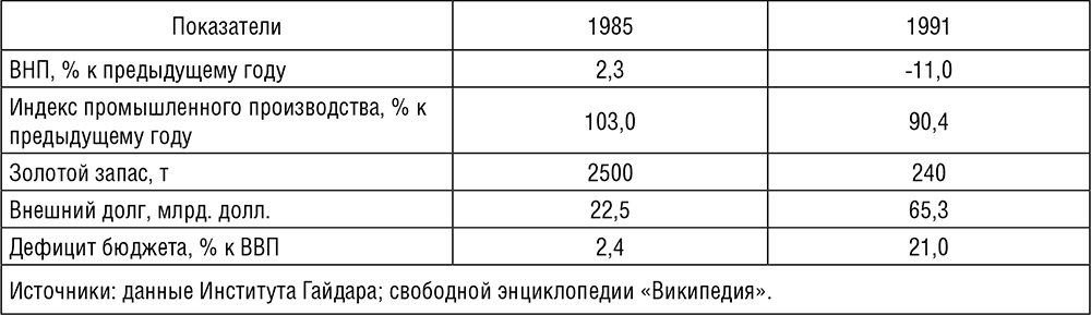 Таблица 1.2. Основные экономические показатели РФ в 1985 и 1991 гг.