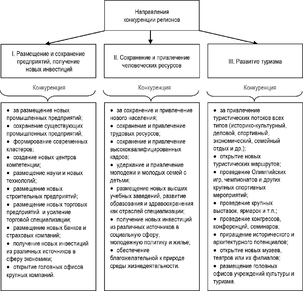 Рис. 1.2. Направления и виды конкуренции регионов [54, 55]