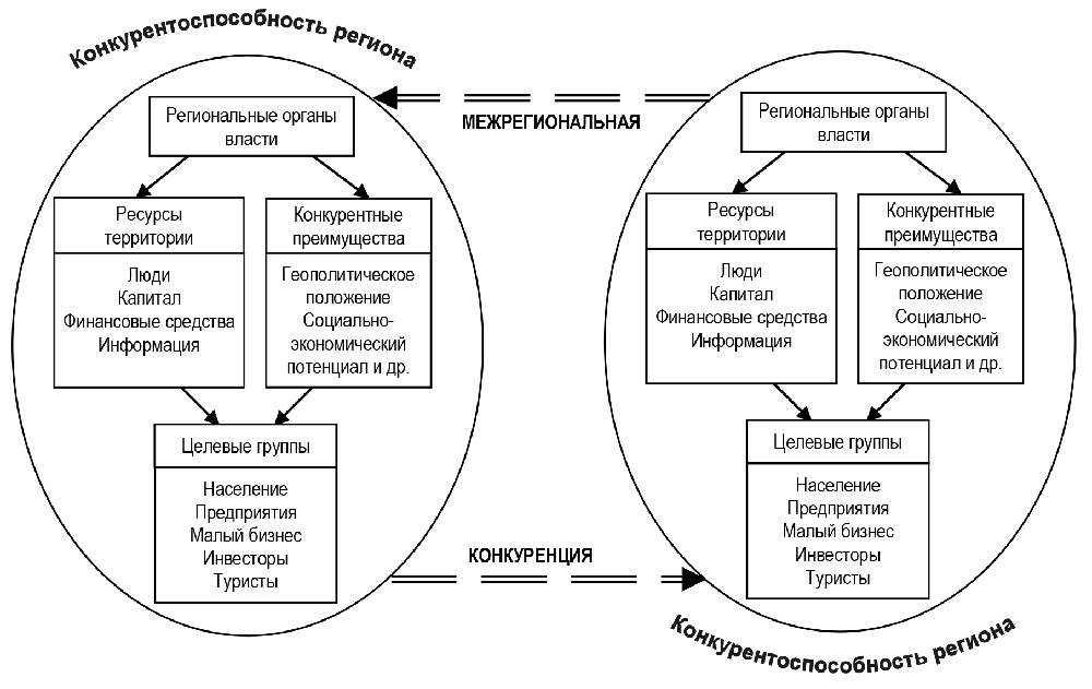 Именно под воздействием конкурентных процессов формируется система региональной конкуренции, предметом которой становятся целевые группы региона: население, предприятия, малый бизнес, инвесторы, туристы.