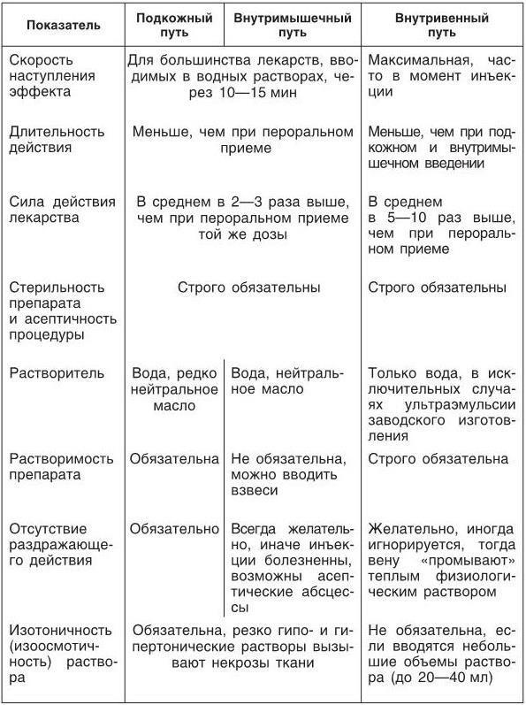 Характеристика подкожного, внутримышечного и внутривенного путей введения лекарственных веществ