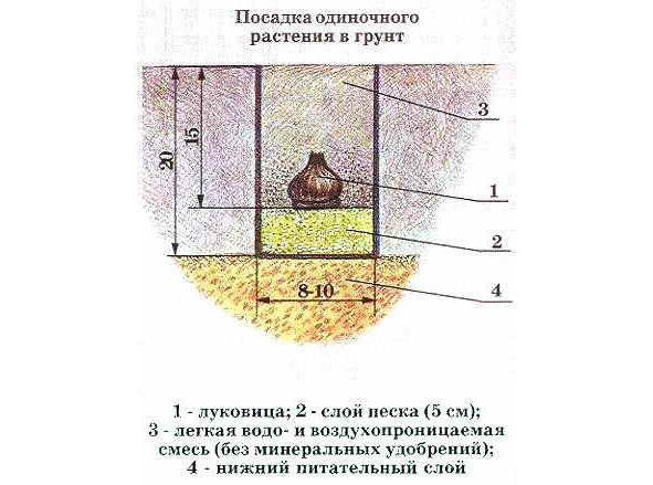 Наиболее подходящими для посадки считаются луковицы, у которых соотношение диаметра донца и луковицы 1:1,5.
