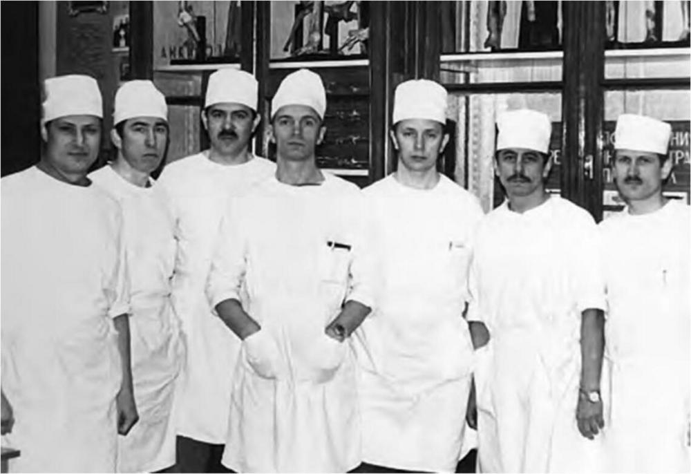В сентябре 1985 г. в Военно-медицинской академии под руководством А. Е. Белоусова создаются курсы усовершенствования по микрохирургии и хирургии кисти. Первая группа начала обучение в 1985 г. (рис. 6).