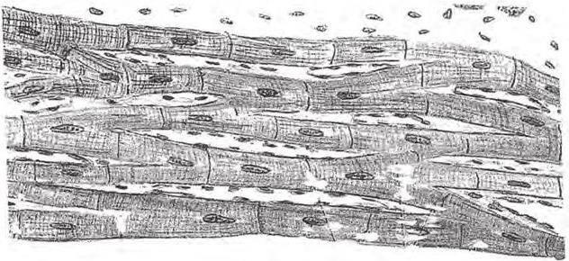 Рис. 2. Продольное расположение и поперечная исчерченность миофибрилл кардиомиоцитов