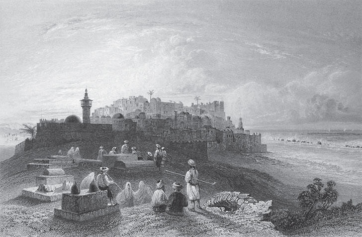Палестинское солнце приветствовало нас ослепительными лучами. В блеске их скрывался берег, которого усиленно, но напрасно искал взор. Расстилавшаяся между солнцем и морем пелена паров позволяла различать только самую легкую черту, чуть-чуть отделявшуюся от поверхности морской и несколько наклоненную к ней. Это был хребет Иудейских гор. Взявши высоту солнца, мы узнали, что находимся на широте Яффы. Поворотив потому прямо на восток, мы еще с полчаса времени не различали ничего, кроме очертаний берега, почти исчезавшего в лучах солнца. Наконец черною точкою стала отделяться перед нами одна возвышенность, которая вскоре, с помощью трубы, оказалась массою зданий. Это была апостольская Иоппия, полная воспоминаний о первоверховном Петре. Далеко от нее фрегат наш бросил якорь, боясь мелководья и волнения. Простым глазом едва можно было различать частности города. Я стал смотреть в трубу; думалось, что одна из многочисленных террас иоппийских должна быть та самая, с которой апостол научился отраднейшему для всего человечества уроку о вселенском составе Христовой Церкви. Поразительным кажется этот божественный урок от местности, на которой он преподан. Иоппия была и есть дверь Иудеи в Европу. Здесь, в самом деле, как бы всего приличнее и уместнее было начаться распространению царства Божи я за тесные пределы строго замкнутого в себе иудейства. Отсюда была прямая дорога идей в процветавшую тогда философиею Александрию и на все острова языков до славных мудростию эллинов и до миродержавных римлян этих четвероногих гадов в отношении к Богопознанию и Богопочтению, несмотря на всю их гражданскую и военную славу в тогдашнем мире. Кто изменил славу нетленного Бога в подобие птиц и четвероногих и гад, тот, как образ и подобие своего божества, конечно, должен был походить на таинственные образы, явившиеся апостолу. Местность дивного видения была однако же не там, где искал ее глаз. Нам сказали после, что она отстоит от города на полчаса пути. Я знал заранее, что не придется видеть ее. В распоряжении нашем не было ни одной лишней минуты; и потому оставалось довольствоваться одним усиленным представлением знаменательного явления, обнимавшего собою и нас, дальних пришельцев. Также нельзя было надеяться увидеть и другое замечательное место Яффы дом, где совершилось чудо воскресения Тавифы.