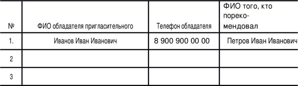 Для учета выданных пригласительных необходимо вести реестр. В данном реестре отражается следующая информация: