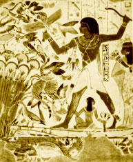 Фараон охотится на дичь. Эта роспись, сделанная в конце XV века до Р. Х., обнаружена на стене гробницы в Фивах.