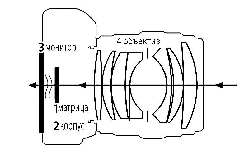 Схема 2. Устройство беззеркальной камеры.