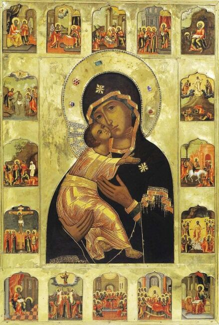 Сложны чувства верующего христианина к Матери Божией. Жгучее сострадание к Той смиренной Деве Назарета, Которая от дней рождения Христа жила под страшным пророчеством ожидавшей Ее муки: и Тебе Самой оружие пройдет душу (Лк. 2, 35); ужас пред той вершиной страдания, до которой возведена была Ее душа на Голгофе; какая-то нежданная радость при воспоминании о слове, которым Христос с высоты Креста в лице Иоанна усыновлял Ей каждого из нас: Жено, се сын Твой Се, Матерь твоя (Ин. 19, 2627), и умиленный восторг при мысли о силе и власти сияющей вечною славою Царицы Небес