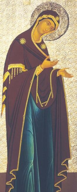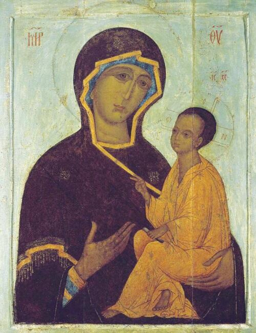 Люди искали новыми и новыми изображениями выразить переполнявшее их к Пречистой Деве чувство восторга и любви. Лучшие художники на своих полотнах старались в красках выразить слагавшуюся в их душе мечту о Пречистой Деве. В тихих кельях монахи-иконописцы изображали на темных досках в несовершенном по живописи, но дышащем верою и умилением образе лик Пречистой.