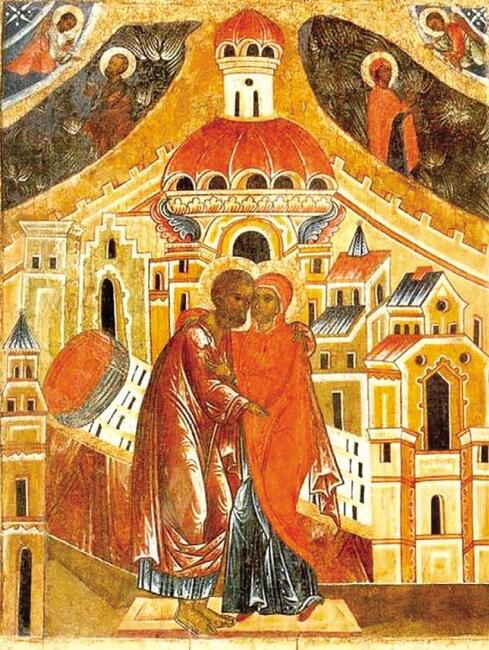 В один из великих праздников Иоаким пришел со своими соплеменниками в Иерусалимский храм для приношения жертвы Богу. Но здесь ему встретился человек, который стал говорить уничижительно о его бездетном браке. Тут в храме, к которому так лежала душа праведного Иоакима, пред жертвой, которую он намеревался с такой любовью принести, его проняло жуткое чувство своего недостоинства. В глубокой скорби вышел он из храма, повторяя: «Для всех сейчас великий праздник, а для меня день слез». Он утешал себя тем, что, быть может, пример его не единственный, и в надежде найти благочестивого бесчадного мужа он из храма пошел осматривать родословные таблицы двенадцати колен. Но таблицы сказали ему, что все благочестивые люди имели потомство, и даже у столетнего Авраама был сын. Иоаким был до того опечален, что не пожелал вернуться домой, а отправился в пустыню, где паслись его овцы. Сердце его было полно глубокой скорби. Чем он был хуже других людей? Разве он не стремился исполнить закон? За что же такая судьба и такое поношение? Сорок дней он провел в пустыне, решившись не возвращаться домой, пока Бог Израилев не посетит его Своею милостью. И он молился о чуде, молился о том, чтобы Бог помог ему стать отцом, как некогда стал отцом в глубокой старости Авраам.
