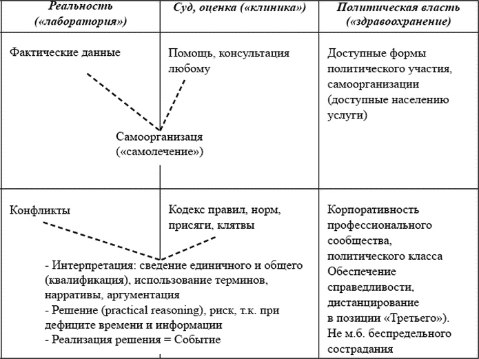 В целостной системе культуры общества политический опыт играет особую роль, обеспечивая совокупное единство этой системы. Политика в чем-то аналогична медицине. Так же как целью медицины является обеспечение здоровья (целостности) организма, так и целью политики является обеспечение здоровья (целостности) социума (общественного «организма»). Более полное содержание аналогии см. Табл. 1