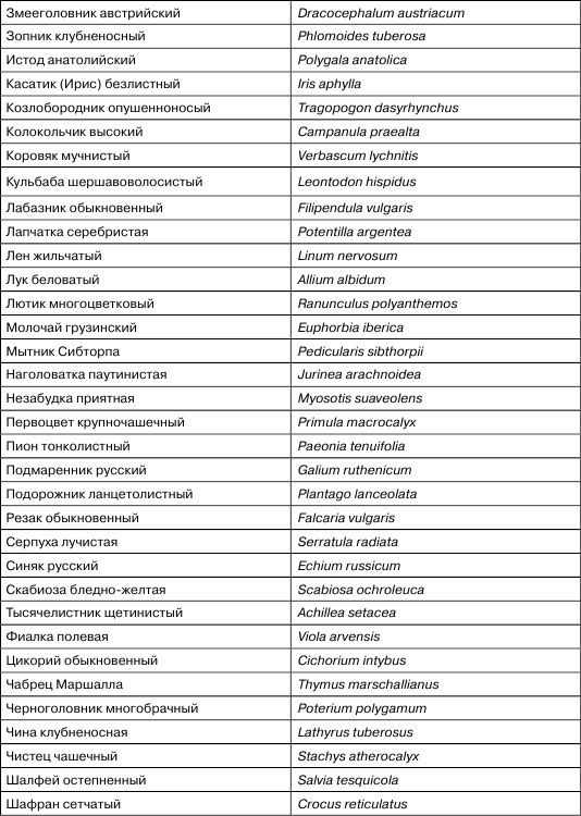 Чрезвычайно разнообразна группа видов из всех других семейств «разнотравье». В луговых степях ставропольских ООПТ всегда присутствуют представители этой группы с обилием «Sp»: