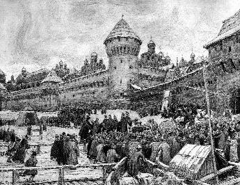 Затем правительнице пришлось прибегнуть к крутым мерам и против второго брата своего умершего мужа, князя Андрея Иоанновича, человека, как казалось, безобидного. По смерти Василия III Елена Васильевна богато одарила этого князя Андрея вещами, оставшимися после покойного, но Андрей стал припрашивать городов к своему уделу, и когда ему в этом отказали, то он уехал из Москвы очень обиженным. Скоро о его недовольстве передали правительнице, а Андрею сообщили, будто его хотят схватить; узнав про это, Елена поспешила рассеять его подозрения, вызвала его в Москву и просила его: «Ты бы в своей правде стоял крепко, а лихих людей не слушал да объявил бы нам, что это за люди, чтобы впредь между нами ничего дурного не было». Андрей сказал, что он ничего ни от кого не слышал, и дал запись, в которой подтверждал свой клятвенный договор с великим князем, и обязывался ссорщиков не слушать, а объявлять о их речах великому князю и правительнице; затем он уехал к себе в Старицу и продолжал по-прежнему опасаться Елены и сердиться на нее, что она ему не прибавила городов. Скоро стали опять доносить в Москву, что он собирается бежать. Елена, по свидетельству летописца, не поверила этому и пригласила его на совет по случаю войны с Казанью, о чем мы будем говорить ниже. Но Андрей отказался под предлогом нездоровья. Тогда Елена послала к нему великокняжеского врача, который, возвратясь, доложил ей, что болезнь простой предлог не ехать в Москву. Это, разумеется, возбудило против Андрея подозрения. К нему опять послали приглашение приехать, но он опять отказался, причем, между прочим, писал малолетнему Иоанну, от имени которого Елена всегда сносилась по всем делам: «Нам, Государь, скорбь и кручина большая, что ты не веришь нашей болезни и за нами посылаешь неотложно; а прежде, Государь, того не бывало, чтобы нас к вам, Государям, на носилках волочили».