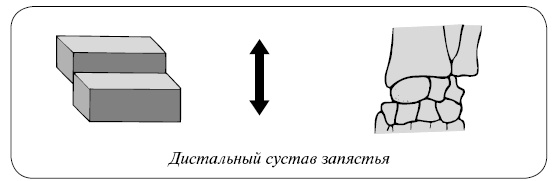 В этом суставе возможно лишь скользящее движение плоской поверхности, обычно ограниченной амплитуды (дистальный сустав запястья).