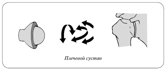 Движения в таком суставе возможны в трех плоскостях, как шарнир, включая вращение. Примером шарнирного сустава является плечевой сустав.