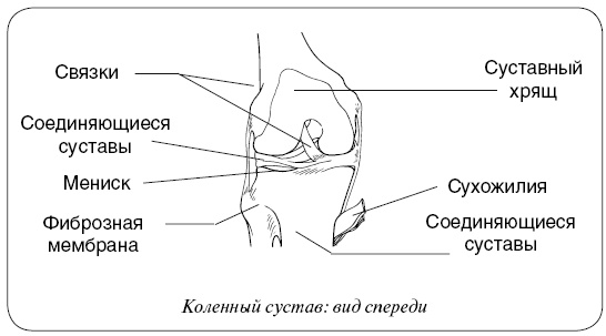 В нем есть связки как снаружи, так и внутри, их называют крестообразными, потому что они имеют форму креста. Кроме того, помимо обычного суставного хряща, который покрывает концы костей всех суставов, между костями находятся два «плавающих» хряща серповидной формы, уже известные нам мениски.