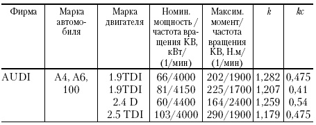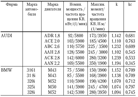 Значения скоростного коэффициента для современных бензиновых двигателей находятся в диапазоне kc=0,345-0,800, а для дизельных соответственно kc=0,364-0,620. Сравнивая эти цифры с данными 25-летней давности, В. Н. Степанов констатирует, что как для бензиновых, так и для дизельных двигателей удалось добиться почти одинакового расширения скоростного диапазона устойчивой работы (уменьшение нижнего предела kc). Верхний предел скоростного коэффициента дизельных двигателей также понизился, тогда как для наиболее высокооборотных бензиновых двигателей отмечено сужение скоростного диапазона с возрастанием значения kc до 0,8.