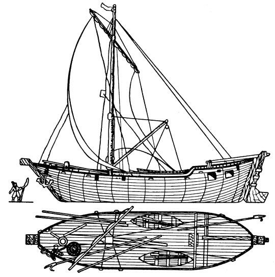 Интересные изменения претерпела в Поморье и старинная русская ладья, превращенная в чисто морское грузовое парусное судно. Большие ладьи строились длиной до 25 м, шириной до 8 м, а грузоподъемность имели от 200 тонн и более. Поморская ладья представляла собой палубное судно, разделенное двумя поперечными переборками на три отделения, каждое из которых имело свой входной люк. В носовом помещении устанавливали кирпичную печь здесь готовилась еда и жила команда. В кормовой части устраивалось жилье (каюта) для кормщика (капитана), там же хранились и мореходные инструменты. В средней части судна находился грузовой трюм глубиной до 4 м. Рангоут судна состоял из трех мачт с прямыми парусами. Общая площадь парусов достигала 460 кв. м. При попутных ветрах ладья делала переходы до 300 км в сутки. На больших ладьях имелось по два якоря, весом до полутонны каждый, и еще один запасной якорь. Якорные канаты длиной до 140 м изготавливались из кожи, а позднее из пеньки. Якоря выбирали из воды с помощью обычного ворота.