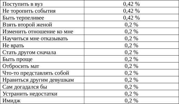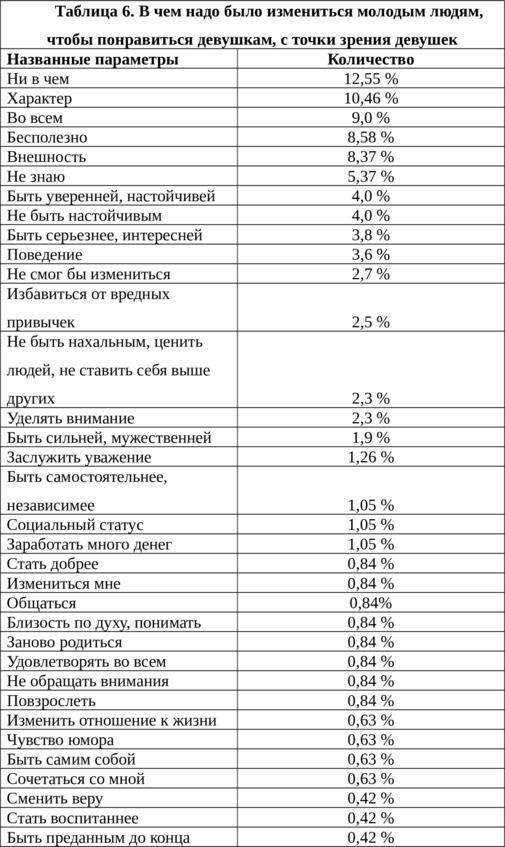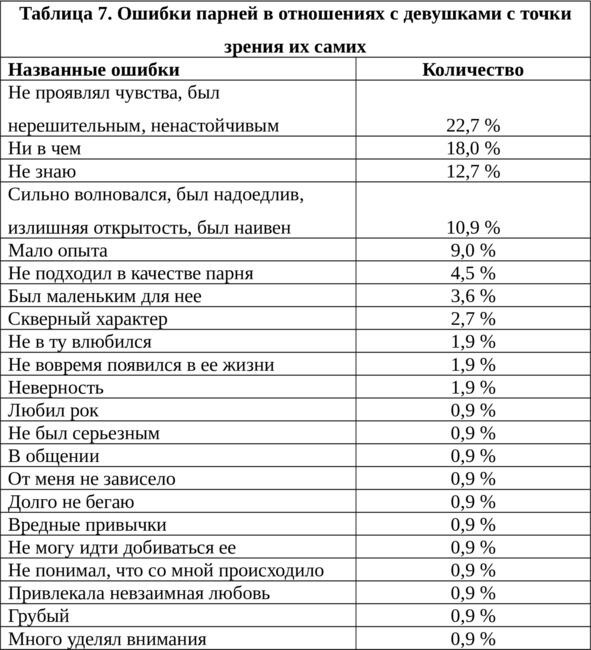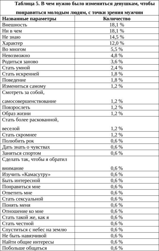 Ответы молодых людей и девушек на открытые вопросы анализировались отдельно. Были получены следующие результаты [2833].