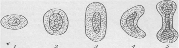 1 округлая; 2 овальная; 3 плоская; 4 бобовидная; 5 гантелевидная.