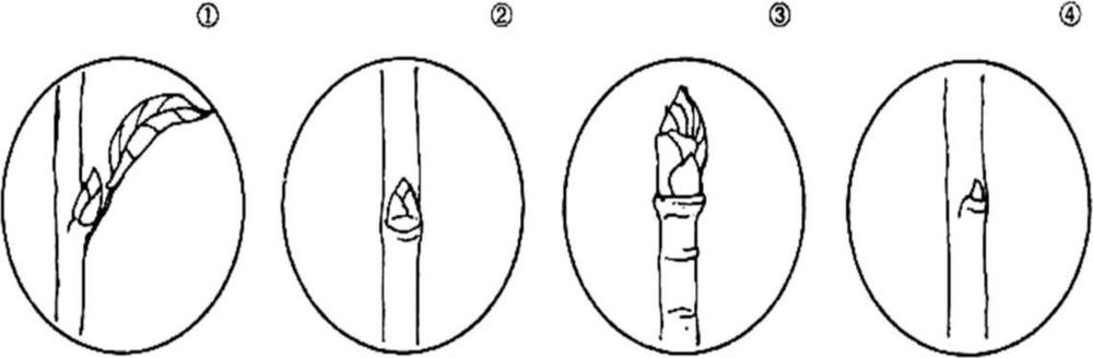 1 цветковая на однолетнем побеге; 2 листовая; 3 верхушечная или терминальная цветковая; 4 спящая