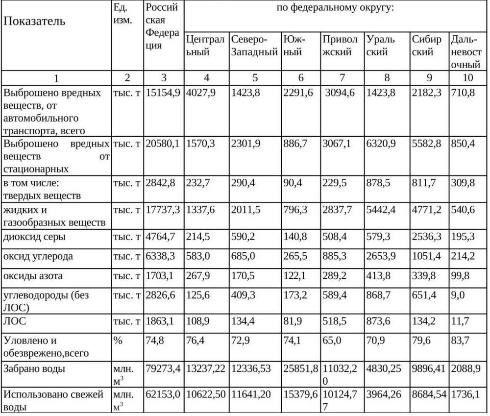 Таблица 1.1 Основные показатели, характеризующие воздействие на окружающую среду Российской Федерации в 2006 г.