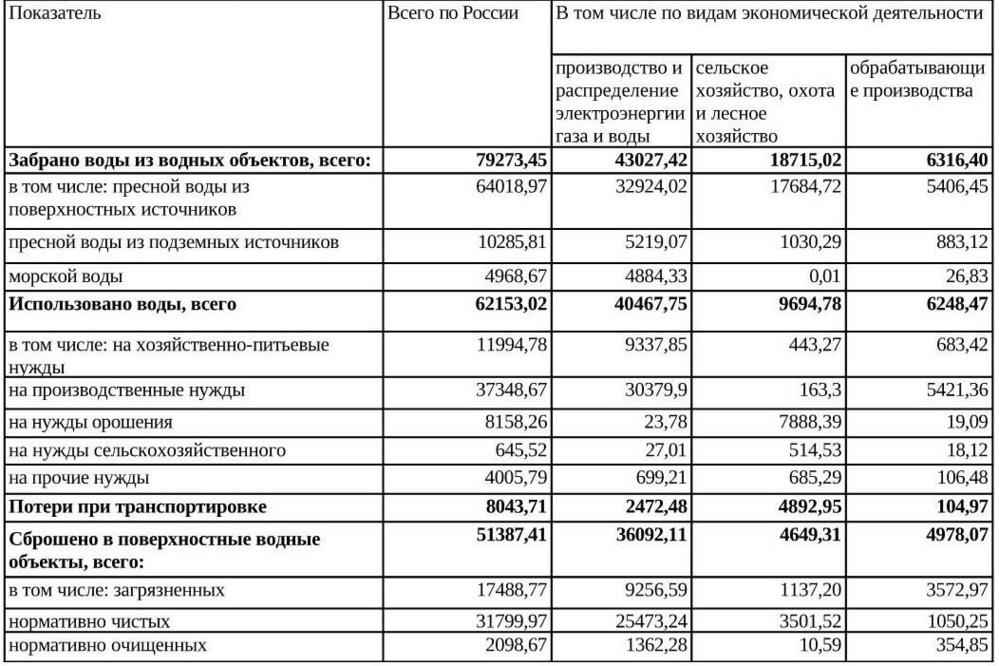 Таблица 1.5 Показатели водопотребления и водоотведения в Российской Федерации в 2006 г., млн. м3