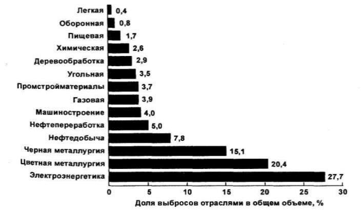 Рисунок 1.1 Распределение отраслей промышленности по производимым ими выбросам загрязняющих веществ в атмосферный воздух