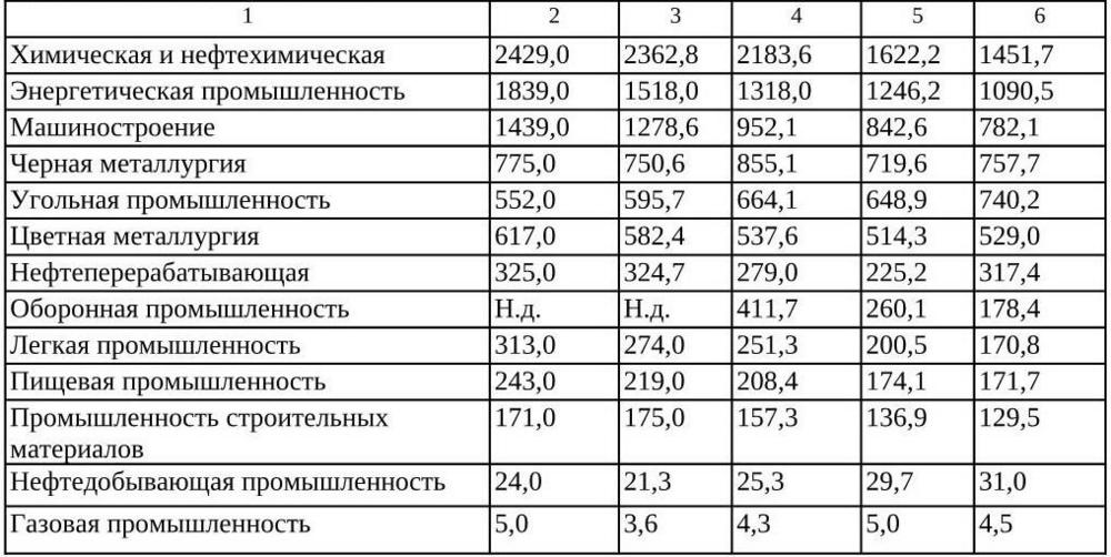 В таблице 1.8 представлена динамика сброса загрязненных сточных вод в поверхностные водные объекты, основных отраслей промышленности.