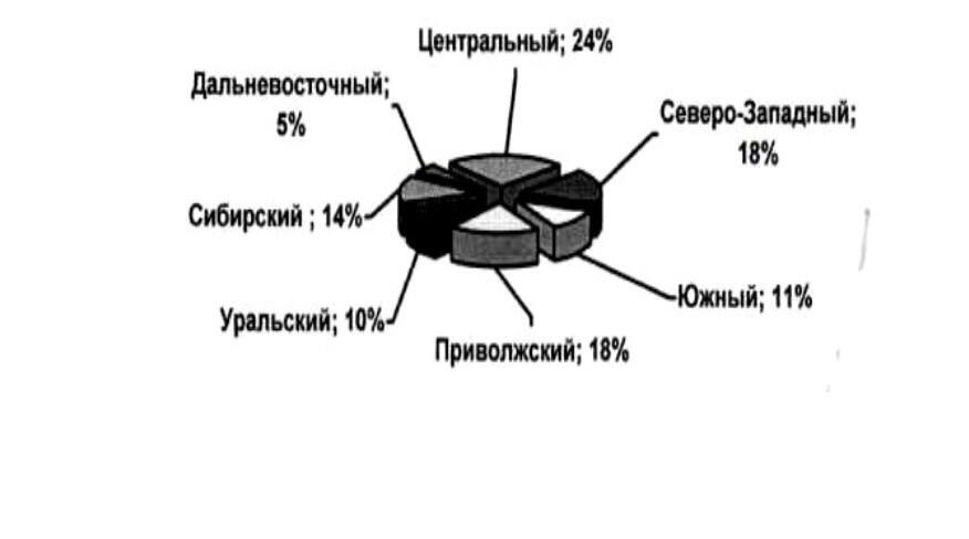 Рисунок 1.6 Распределение по федеральным округам объема сброса загрязненных сточных вод в поверхностные водные объекты в 2006 году